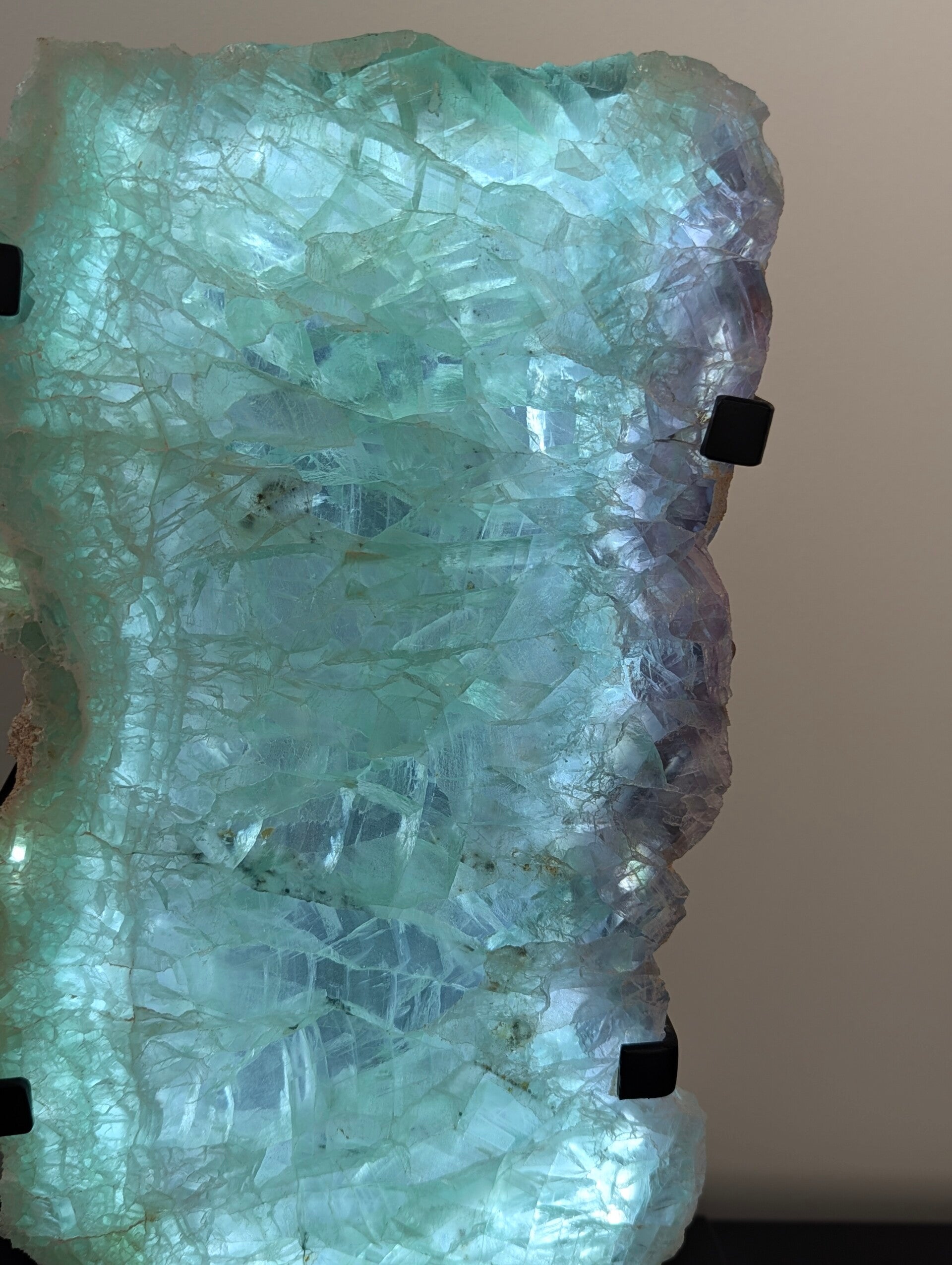 Touche cosy avec cette lampe fluorite. Dans un salon ou dans une chambre à coucher, la fluorite est considérée comme une pierre protectrice qui éloigne les mauvaises énergies.
