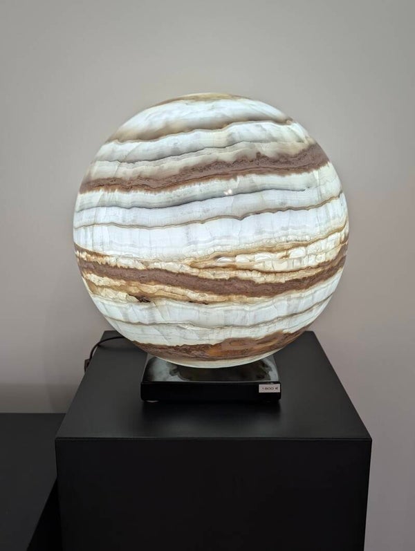 Optez pour une lumière douce et chaleureuse avec cette lampe sphère en onyx du Méxique: