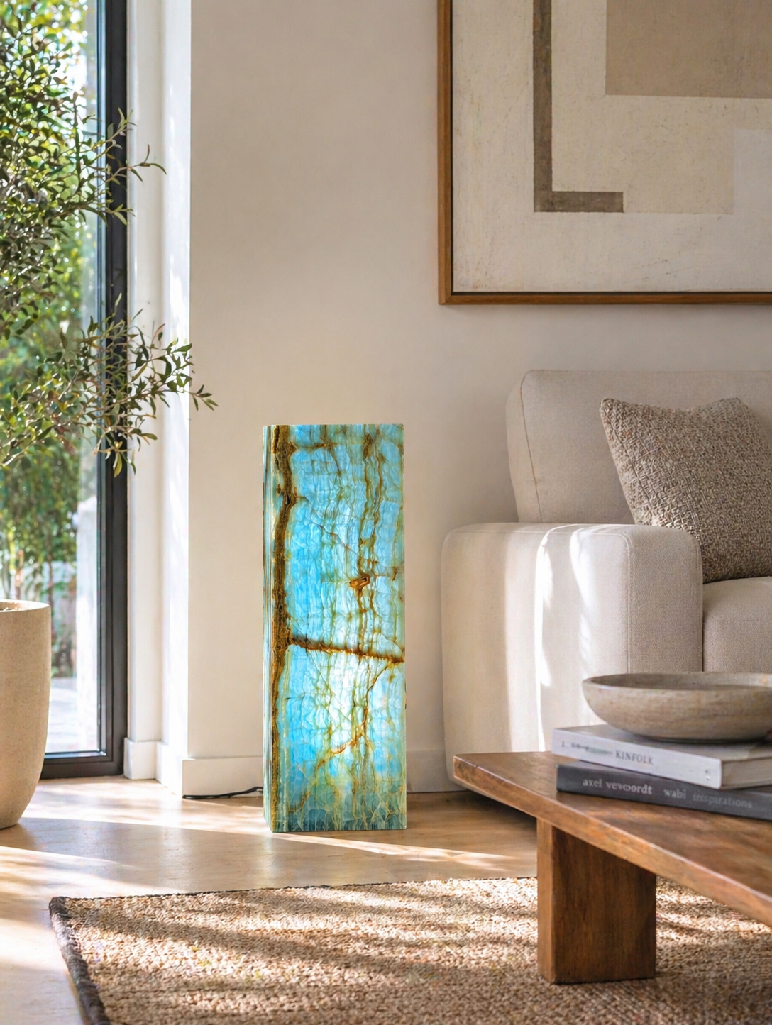 Lampe en onyx bleu d'Argentine, ajoutez une ambiance chic et cozy à votre intérieur.