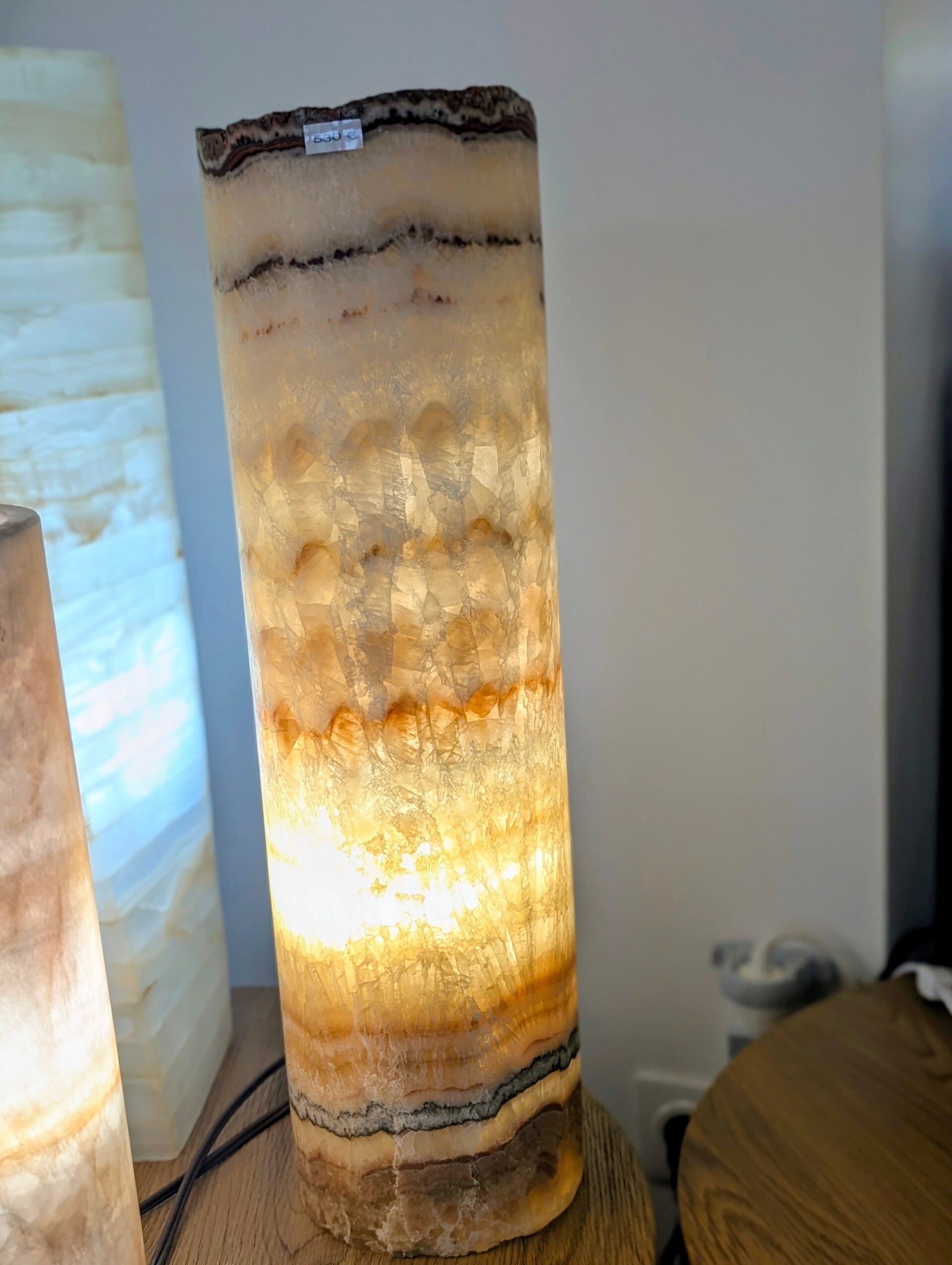 Lampe en onyx du Mexique, elle apporte une lumière douce et chaleureuse.